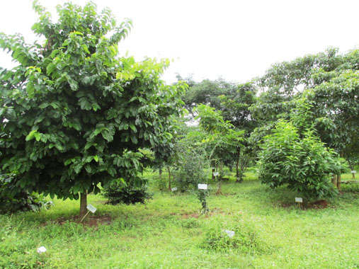 A total of 374 species of medicinal plants are conserved in the garden, of which 129 are tree species, 94 are shrubs, 41 are climbers, 102 are herbs and 6 are others (orchids, grasses, ferns etc). The model also has gardens for invasive alien species, women’s medicinal plants, orchids, Eastern ghat- RET species, exotic plants, wild food species, home herbal plants and one sacred groove model. There is a plot to demonstrate cultivation of 24 commercially cultivated medicinal plants prioritised by National Medicinal Plants Board (NMPB).